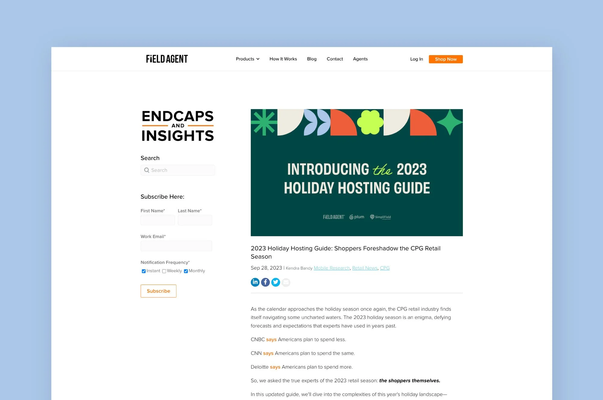 Field Agent surveys thousands of holiday season consumers each year to gather shopping data that’s compiled into a detailed report, complete with graphs, quotes, and insights.